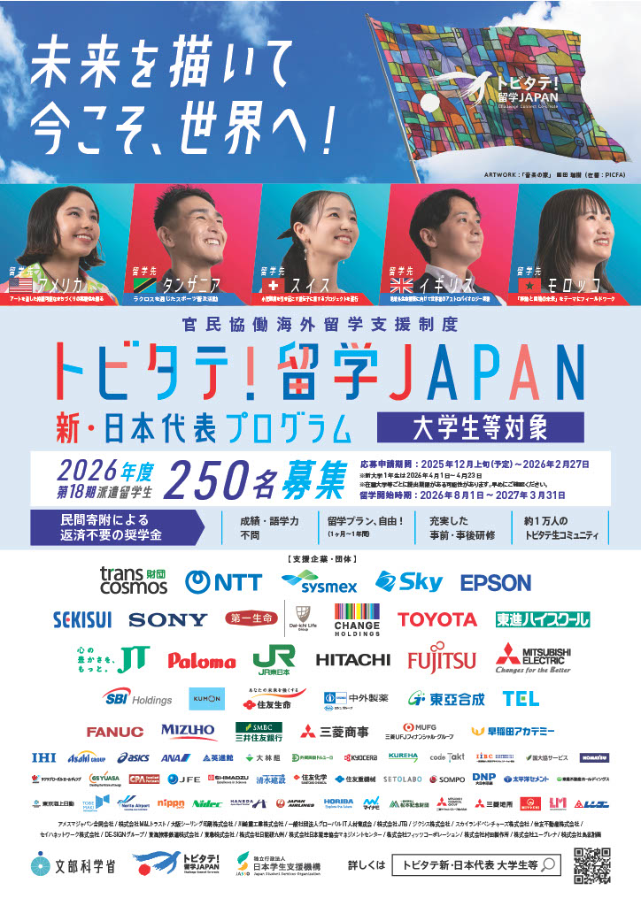 トビタテ!留学JAPAN 新・日本代表プログラム【大学生等対象】